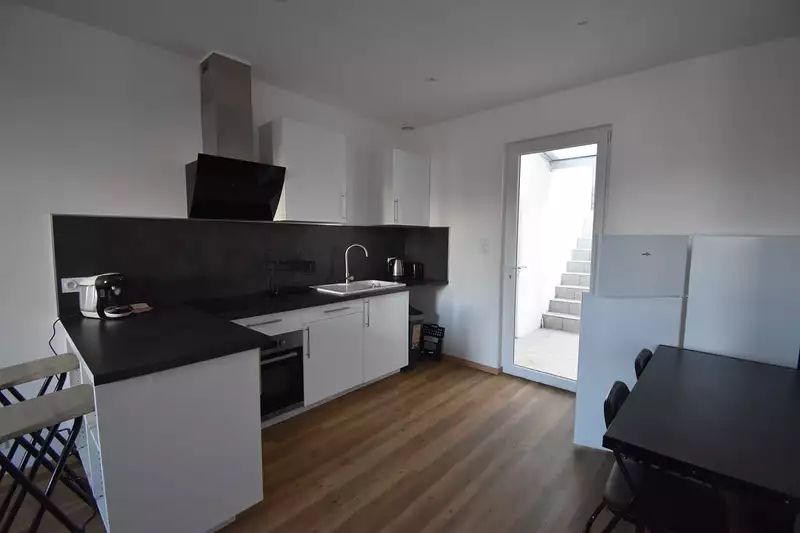 Située à Angoulême proche Victor Hugo, cette maison de ville rénovée comporte au rez de chaussée un appartement (kitchenette, pièce de vie et salle d'eau) et à l'étage un T3 ( entrée, cuisine aménagée ouverte sur le séjour, deux chambres, une salle d'eau, véranda) terrain clos arboré. 209500€ honoraires d'agence inclus. (honoraires à la charge des acquéreurs, prix hors honoraires 199500€) Plus de biens sur notre site snb-immobilier com Tél: 05.45.68.00.78