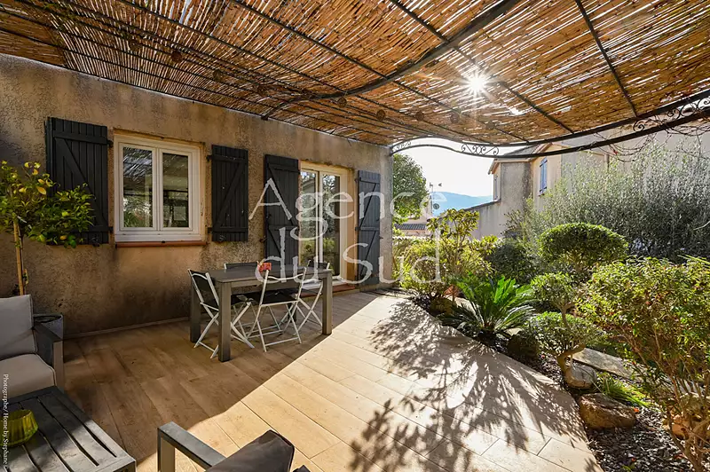 AURIOL en EXCLUSIVITE, l'Agence du Sud a le plaisir de vous présenter cette jolie villa de type 4 en très bon état située dans un secteur recherché du village. Sur 2 niveaux, cette maison d'env. 100 m² hab et sur env. 313 m² de terrain clos et arboré est en très bon état. Vous entrez directement dans une agréable pièce à vivre avec une cuisine semi ouverte, aménagée et équipée. Espace bureau aménagé. Accès à la terrasse sans vis et au calme. A l'étage, 3 chambres et les sanitaires. A l'extérieur, vous profiterez en toute tranquilité sur une terrasse sans vis à vis. Garage attenant à la maison et place de stationnement privée. Cette maison prête à vivre n'attend que vous !! Soumis au statut de la copropriété, syndic bénévole, pas de procédure en cours, env. 100.00 euros de charges / AN. Bien soumis au statut de la copropriété dont le montant des charges annuelle est d'env. 200.00 euros. N'hésitez pas à nous contacter pour renseignements et/ou visites au 04 42 01 12 12. Copropriété de 100 lots - dont 100 lots habitation. (Pas de procédure en cours). Charges annuelles : 100 euros.
