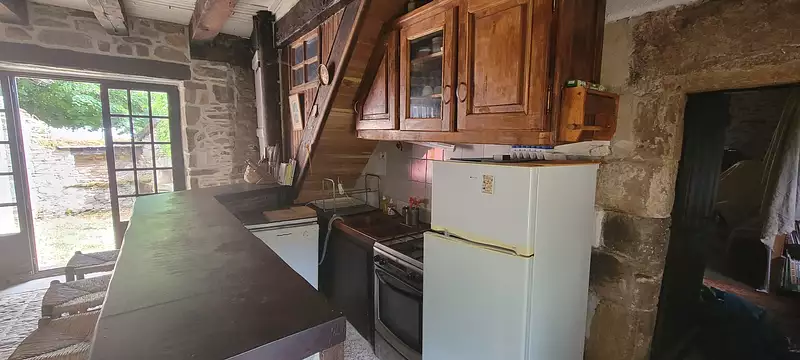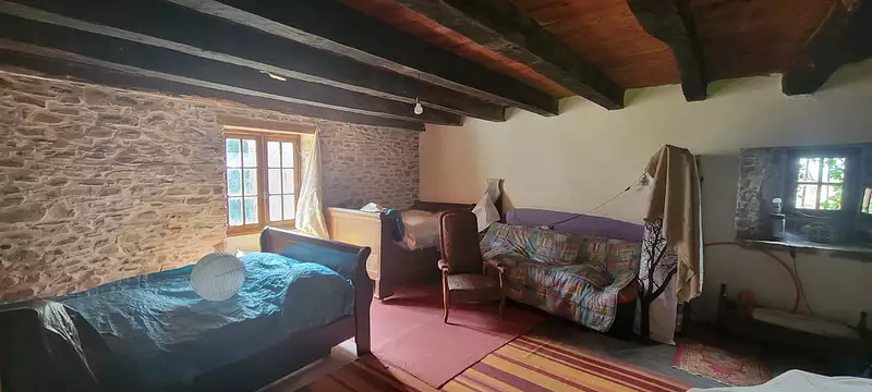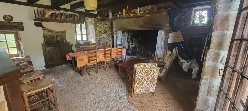 Cet ensemble sur les hauteurs de Beynat comprend une maison construite en pierre en 1633 et composée d'un séjour avec un sol en galets, coin cuisine et cantou, 3 chambres, une salle d'eau avec WC à l'extérieur et une cave voutée, habitable de suite mais nécessite des travaux pour y vivre à l'année.