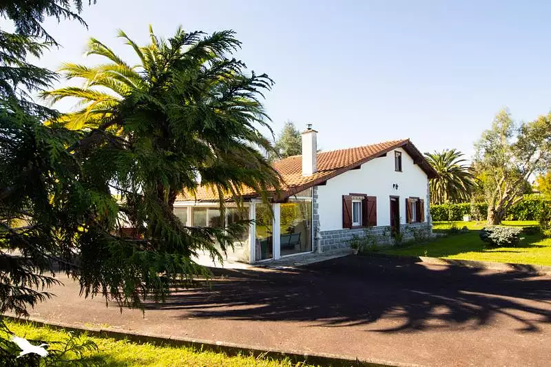 Bidache Sur les hauteurs, maison traditionnelle de plain pied . 3 chambres Séjour ouvrant sur véranda . Belle vue dégagée et parcelle arborée très agréable . Garage