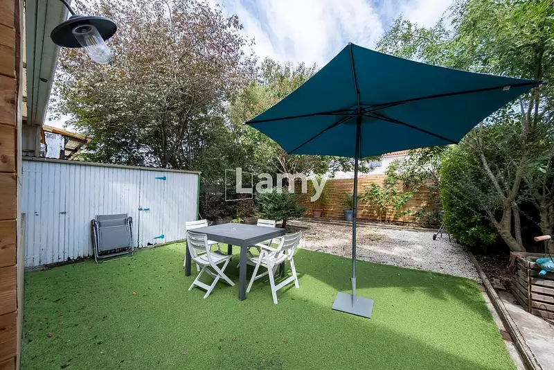 COLOMIERS A proximité du centre ville. 250 m du LINEO. 6 min de la Gare et du futur métro. Nous vous proposons de découvrir cette maison 4/5 pièces de 90 m² sur une parcelle de 165 m². Cette maison jumelée d'un seul côté est composée au rez-de-chaussée d'une entrée, un salon cosy climatisé de 16 m², une salle à manger attenante lumineuse de 11 m², une cuisine au sud équipée meublée de 8 m², un WC. L'étage climatisé est composé de 3 chambres de 9 m², 10 m² et 13 m², un dressing, un placard et une salle de bains rénovée. Le chauffage est au gaz et climatisation réversible. L'espace extérieur est sans vis-à-vis et arboré. Garage buanderie de 14 m². Classe énergie D. Prix: 239 000 euros honoraires inclus charge vendeur. AGENCE LAMY COLOMIERS TEL 05 31 54 77 38