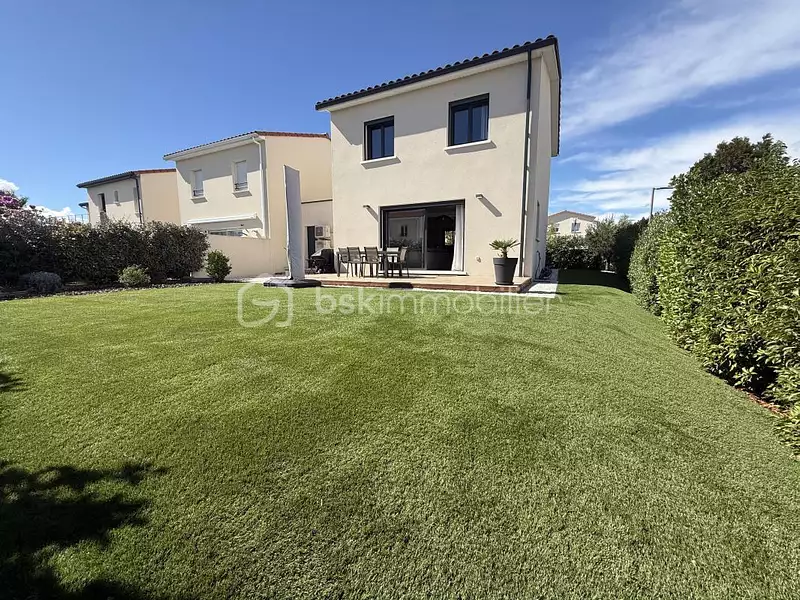 Dans un quartier pavillonnaire, découvrez cette villa 3 faces environ 95 m² habitable édifiée en 2020, sur une parcelle de 357 m² piscinable , entièrement paysagée d'essences méditerranéenne.