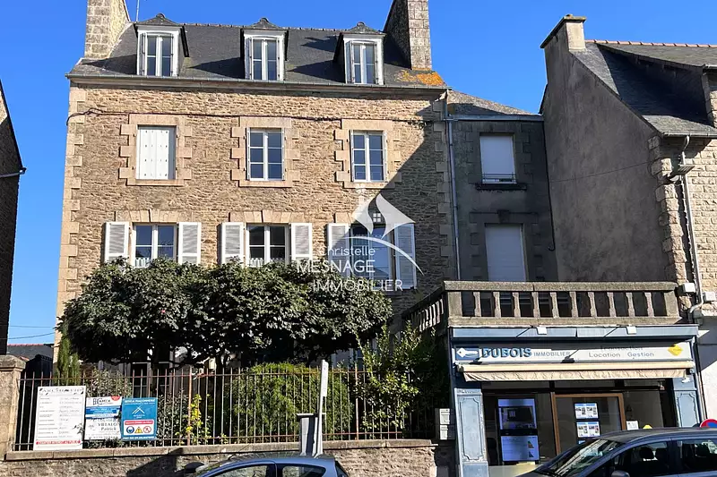Exclusivité. A Vendre chez Christelle Mesnage Immobilier, DINAN CENTRE, un immeuble comprenant un local commercial loué avec vitrine de 20m² environ ayant pignon sur rue et un appartement loué en triplex de 90 m² de surface habitables offrant : une entrée une cuisine équipée, un séjour, une salle de bains équipée, trois chambres, un petit cellier.