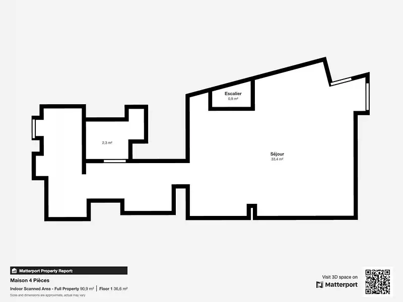D'une surface de 90 m2 répartis sur trois niveaux, elle offre :