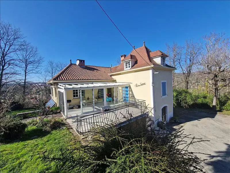Située au porte de FIGEAC, maison construite sur sous sol total de type 4 double garage motorisé comprenant : Chauffage central pompe à chaleur Air / Eau, une PAC air / air dans le séjour, ballon d'eau chaude solaire, Volet roulant et tableau électrique sous disjoncteur. 2 sources (1 potable et l'autre non) Grand terrain