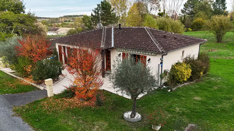 Située au centre d'un agréable village campagnard, cette maison de plain-pied surélevé construite en 1989 offre un cadre de vie paisible à moins de 5 km de toutes les commodités. A l'avant, vous découvrirez une belle terrasse paysagée et arborée, une cour goudronnée et un jardin verdoyant de plus de 1 400 m², idéal pour profiter des beaux jours en toute tranquillité. L'entrée spacieuse dessert d'un côté un salon-séjour lumineux agrémenté d'un poêle à pellets, et de l'autre une cuisine aménagée et équipée alliant praticité et convivialité. La partie nuit se compose de trois chambres donnant sur le jardin arrière sans vis-à-vis, d'une belle salle d'eau avec douche à l'italienne et double vasque, ainsi que d'un WC indépendant. Un escalier intérieur mène au sous-sol, où se trouvent un cellier équipé d'un adoucisseur d'eau, des espaces de rangement, ainsi qu'un grand garage offrant de multiples possibilités d'aménagement. Un bien rare dans un environnement calme et verdoyant, idéal pour une famille ou un couple recherchant le confort du plain-pied avec de beaux volumes extérieurs.