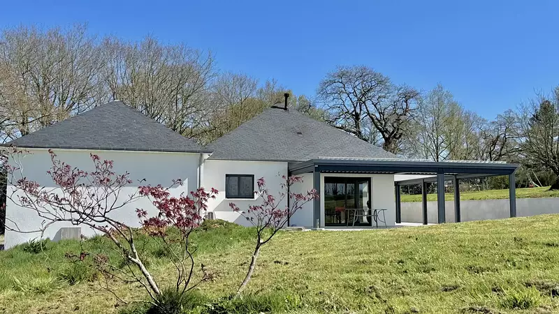 CE QUE NOUS AVONS AIME: La domotique, un double garage motorisé de 33 m² avec buanderie et une immense terrasse de 250 m² avec pergola bioclimatique !