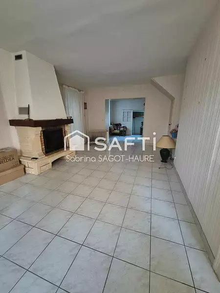Cette maison de 90 m² sur un terrain de 331 m² propose une entrée donnant sur un séjour lumineux ouvert sur la salle à manger, une cuisine équipée, et un wc.