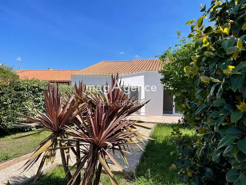 Éric GRIGNON - megAgence vous propose cette agréable maison de plain-pied d'une superficie de 90 m², implantée sur une parcelle de 594 m², à seulement 10 minutes de la plage et à proximité immédiate des commerces.