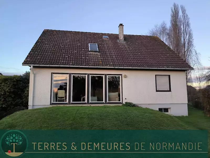 Maison dans petite ville normande, commerces à pied.