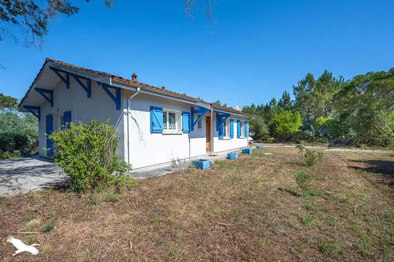 Maison comprenant une cuisine équipée, séjour lumineux, 3 chambres, salle d'eau, terrasses sud/ouest. Chalet indépendant. Garage. Parcelle de plus de 1900m2, donnant sur une vue boisée, sans vis-à-vis. Accès à pieds aux écoles martenelle et primaires. Dessertes collège et lycée. Bus pour Bordeaux, le Barp, Salles. 8mn des commerces Proposition d'aménagement virtuel non contractuelle en dernière photo.