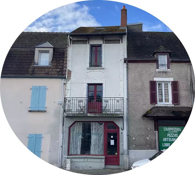 Auv 1141 : Maison de village habitable de 3x30m2, grenier, cave Cette maison était à l'origine en bas une bibliothèque, un magasin, etc. et en haut un appartement. Bien sûr, la totalité peut également être utilisé comme une maison spacieuse. Chaque étage a un peu plus de 30m2 et le grenier est complètement isolé, avec une pièce supplémentaire de 10m2 de hauteur au-dessus de 1m80 et une surface au sol beaucoup plus grande. L'aménagement intérieur et l'installation électrique ont été refaits au cours des 8 dernières années, les fenêtres sont encore d'origine en simple vitrage. La maison est en fait très bien agencée. Au rez-de-chaussée, il y a une grande pièce de 30m2 avec plafond en poutres apparentes, à l'arrière l'escalier menant à la cave sous tout le bâtiment, et il y a aussi un cabinet de toilette séparé avec toilette suspendue et lavabo pour être conforme à un magasin. Au premier étage, il y a une grande cuisine-salon avec un bloc cuisine, un poêle à bois et du chauffage électrique. Des portes doubles en verre donnent accès à un balcon suffisamment grand pour s'y installer avec des chaises. Comme il y a une rue en face et pas de maisons, la vue est dégagée et on peut même voir le paysage verdoyant de la région tout en étant au milieu du village. Agréable ! Le deuxième étage dispose d'un hall (5,3m2) qui donne accès à la chambre (15m2, hauteur sous plafond de 2m65) avec une grande fenêtre côté devant, une cheminée et un chauffage électrique. La salle d’eau spacieuse et entièrement rénovée (10m2) avec douche à l'italienne, meuble vasque, toilette suspendue et bidet est accessible séparément par le hall. Dans ce hall, il y a également le bel escalier en bois menant au grenier aménagé avec 2 Velux.
