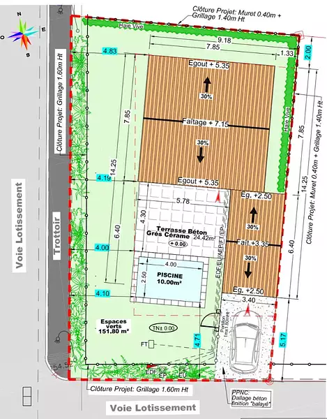 | 90 m² - 4 pièces - 3 chambres - ter. 297 m² | Année de construction : 2025 |