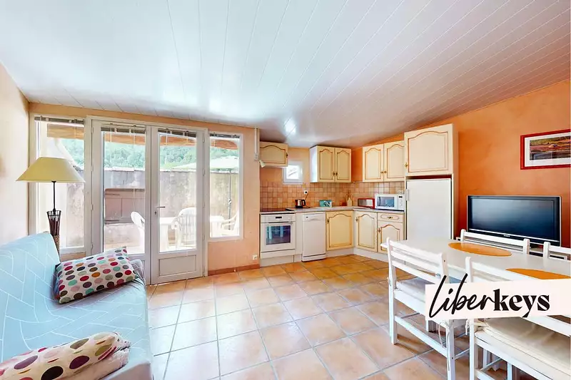 Au dernier niveau, une pièce très lumineuse composé d'une cuisine aménagée et équipée avec coin salon donnant sur une belle terrasse pour vos moments en plein air, parfaite pour des déjeuners ensoleillés ou des soirées entre amis, tout en bénéficiant de la douceur de vivre provençale.