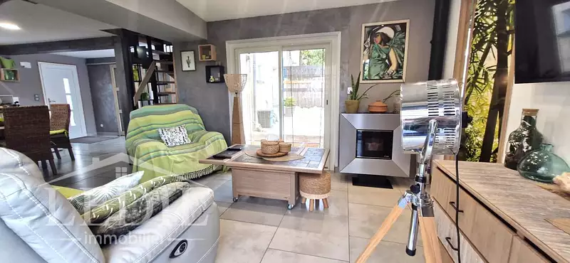 d'une grande pièce de vie lumineuse avec cuisine équipée,