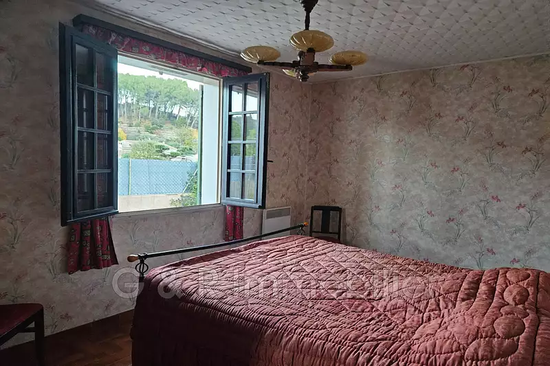 Peypin, dans petit lotissement proche La Destrousse, maison de type 4, de plain-pied avec garage attenant et communiquant sur environ 400 m² de terrain plat et clos. Buanderie, atelier. Piscine. Maison saine - prévoir une remise au gout du jour, mais habitable immédiatement. A voir vite!!