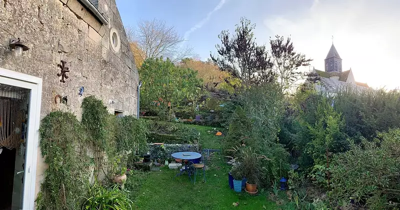 Ce jardin, magnifiquement entretenu est orné d'une variété d'espèces végétales, d'arbres majestueux, créant un véritable havre de paix. Cette propriété dégage une atmosphère authentique grâce à ses poutres apparentes, ses pierres d'origine, ses vitraux et ses carrelages anciens.