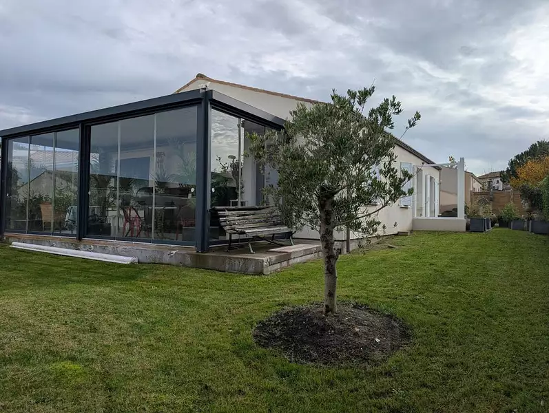 Jolie maison récente très fonctionnelle, de Plain-Pied offrant une belle Pièce de Vie (séjour-cuisine de 41m² env.) ouvrant sur une terrasse avec une pergola, trois chambres avec placard, salle d'eau, wc, une pergola bioclimatique de 21m² env.