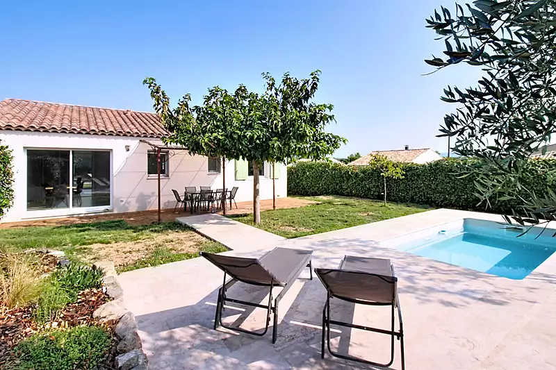 A VENDRE EN EXCLUSIVITÉ Maison de plain-pied à Vidauban Située dans un secteur calme et résidentiel, cette maison récente construite en 2017 offre tout le confort d'un bien moderne et fonctionnel. D'une superficie d'environ 90 m², édifiée sur un terrain clos et paysagé de 549 m², elle se compose d'une entrée, d'un séjour lumineux avec espace salle à manger et cuisine aménagée et équipée, prolongée par un cellier attenant. Le coin nuit dessert trois chambres agréables d'environ 12 m² chacune, une salle de bains et un WC indépendant. A l'extérieur, vous profiterez d'un jardin entièrement clos et sécurisé par un portail en fer forgé, d'une terrasse couverte idéale pour vos repas d'été, ainsi que d'une piscine 4,30 x 2,20 m parfaite pour se rafraîchir en saison estivale. Maison prête à vivre, BELLES PRESTATIONS à proximité des commodités, écoles et axes autoroutiers (moins de 10 minutes), les plages étant accessibles en 30 minutes. Un bien idéal pour une famille OU PREMIER ACHAT Coup de coeur assuré. A visiter sans tarder ! Stéphane SCARPITTA (EI) Agent Commercial - Numéro RSAC : 422 190 389 - DRAGUIGNAN.