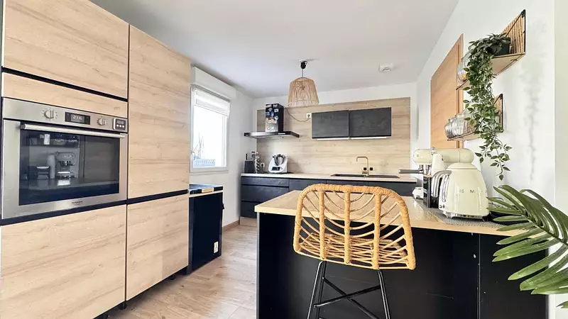 Au RDC, d'une entrée, d'une cuisine équipée et aménagée ouverte sur la pièce à vivre et donnant accès à la terrasse et au jardin, d'un WC séparé et d'un garage.