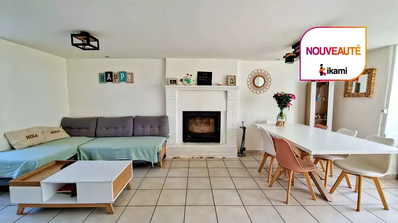 Au rez-de-chaussée, la cuisine équipée s'ouvre sur le séjour-salle à manger lumineux avec cheminée (insert).