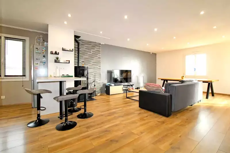 Le grand séjour est idéal pour des moments conviviaux en famille ou entre amis. Sa disposition ouverte sur la cuisine crée une atmosphère chaleureuse et accueillante.