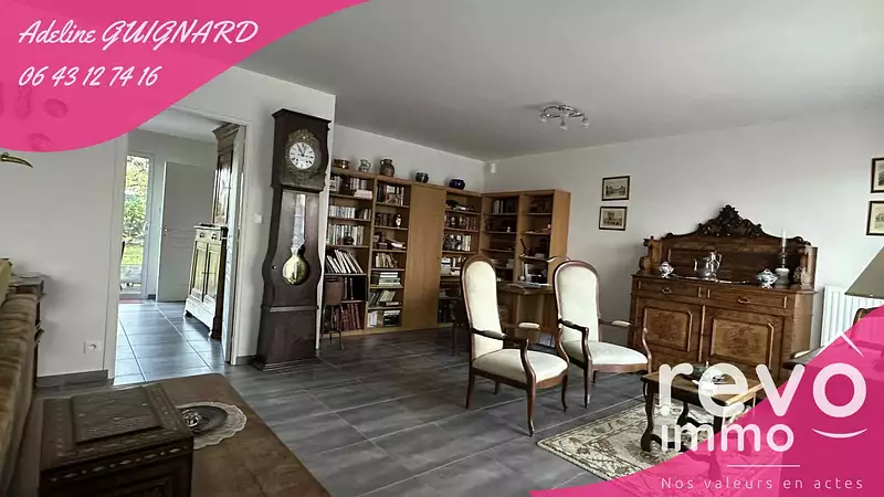 À La Tessoualle, cette maison de plain-pied construite en 2015 d'environ 90 m² propose de belle prestation et offre un cadre de vie confortable au cœur d'un quartier calme et résidentiel. La pièce de vie est baignée de lumière, tandis que la cuisine fermée, aménagée et équipée, permet un accès direct vers l'extérieur sur un jardin arboré. L'espace nuit regroupe deux chambres ainsi qu'une salle d'eau et des toilettes séparés, créant un ensemble fonctionnel et agréable. Une lingerie chauffée avec sortie sur le jardin facilite l'organisation du quotidien. La propriété comprend également un vaste garage de 38 m² doté d'un portail motorisé et d'un grenier, idéal pour le stockage. Le terrain, entièrement clos et agrémenté d'un cabanon, offre un environnement paisible et parfaitement entretenu. Bien rare sur le secteur ! SAS REVO IMMO - GUIGNARD Adeline EI - O643 127 416 - Plus d'informations sur (réf. 4901051168). Agent commercial RSAC ANGERS 877 559 526 - Honoraires : 9 900 € TTC (3,96 %) inclus charge acquéreur (250 000 € hors honoraires) - Les informations sur les risques auxquels ce bien est exposé sont disponibles sur le site Géorisques : https://www.georisques.gouv.fr/.