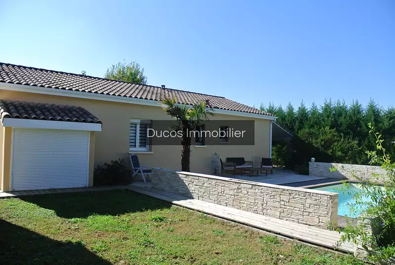 Aux portes des commerces et des commodités venez découvrir cette maison de plain pied qui offre une entrée avec placard, un agréable séjour lumineux avec cuisine ouverte, 3 chambres avec placard et une salle de bains . Pour vos soirées d'été vous profiterez d'une terrasse couverte qui donne directement sur l'espace piscine et son parc clos et arboré de 2300 m2 . Fonctionnelle elle propose un garage avec un abris voiture et un cellier. De belles prestations avec la climatisation, des panneaux solaires en autoconsommation, isolation des comble récente, un puits. Ref 4481 Contactez l'Agence Ducos Immobilier