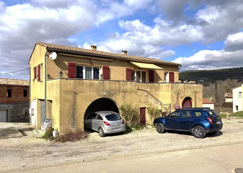 EXCLUSIVITE ISI - A proximité immédiate du centre-ville de Mollans sur Ouvèze, cette villa bâtie en 1985 est composée de deux appartements avec terrasses et des dépendances dont un garage d'environ 91m2, l'appartement 1 de type T2 loué 500€/mois et l'appartement 2 de type T3 loué 560€. Pas de copropriété. Appartement 1 (T2) : - Séjour/Cuisine, - Chambre, - Salle d'eau/Wc, - Terrasse privative. Appartement 2 (T3) : - Séjour/Cuisine, - 2 chambres, - Salle d'eau, - Wc indépendant, - Terrasse privative. Annexes : - Grand garage (91m2), - Petit garage (15m2), - Espace sous terrasse. Intérêts : - Proche centre-ville, - Grand garage, - Grandes terrasses.
