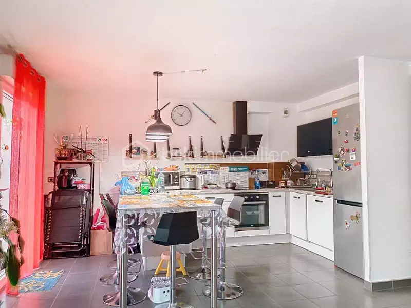Elle dispose au rez-de-chaussée d'une entrée avec un wc , une pièce de vie exposée plein sud avec cuisine ouverte aménagée et équipée.