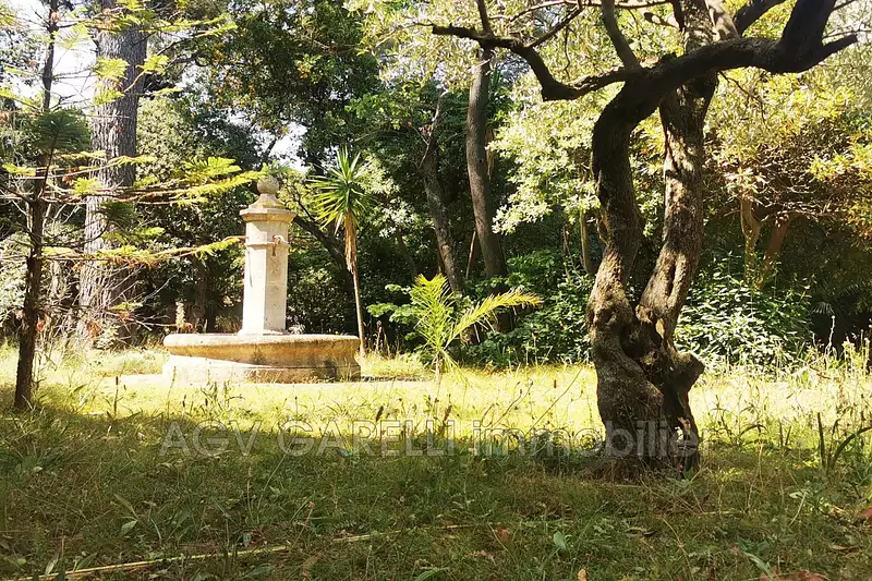 Le bas de cette maison comprend une terrasse exposé ouest de 15,37 m², s'ouvrant sur un magnifique jardin clôturé situé dans un espace boisé classé de 183 m². Cet espace boisé classé offre une très belle fontaine, plusieurs arbres comme des oliviers, cyprès, caroubiers, magnolias et les massifs méditerranéens...