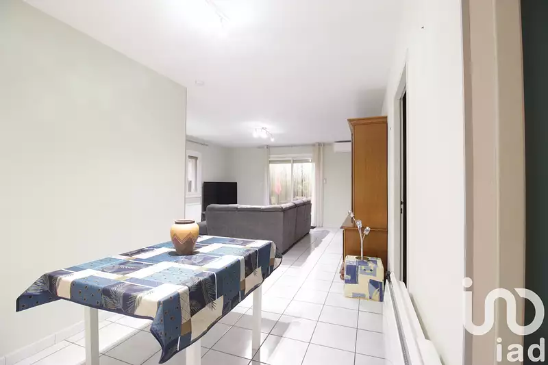 La maison, en excellent état, dispose d'une cuisine indépendante et d'une vaste pièce de vie orientée sud-ouest, séparée par des cloisons. Elle comprend également trois chambres au rez-de-chaussée, un WC indépendant, une salle de bain, ainsi qu’un accès direct au grand garage avec buanderie et mezzanine.