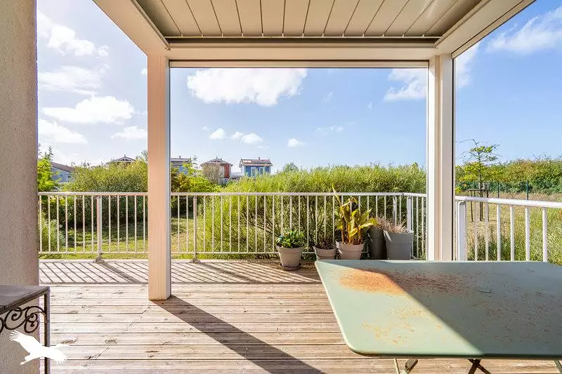 Jolie maison en résidence sécurisée avec piscine, rdc aux normes pmr, composé d'un séjour, cuisine équipée, chambre, sde, wc, cellier, terrasse bois avec pergola bioclimatique. A l'étage vous aurez 2 ch, une sdb avec wc, une terrasse bois. Vendue joliment meublée avec en plus un garage et une place de parking.