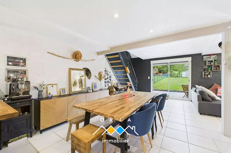Dès l'entrée, on découvre un intérieur chaleureux et parfaitement entretenu. Le rez-de-chaussée s'ouvre sur un vaste espace de vie de près de 48 m², composé d'une cuisine ouverte sur la salle à manger et le salon. Les volumes sont généreux, la lumière traverse la pièce, et l'accès direct à la terrasse et au jardin crée une belle continuité entre intérieur et extérieur. Un lieu convivial, idéal pour partager des moments en famille ou entre amis.