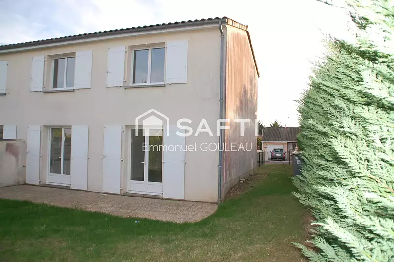 Buxerolles, proche commodités et arrêt de bus, maison sur 2 niveaux de 2003 en très bon état proposant 93 m2 habitables sur parcelle de 325m2 avec garage. Le rez de chaussée propose une entrée avec penderie, un salon-séjour, une cuisine équipée et aménagée, une arriere cuisine, 1 WC, un garage. A l’étage, 3 chambres sur parquet flottant avec placards, une salle bain, 1 WC.