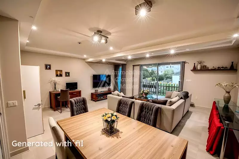 Le rez de chaussée se compose d'une entrée, d'un salon-séjour lumineux, d'une cuisine aménagée et équipée ainsi que d'une salle de bain.
