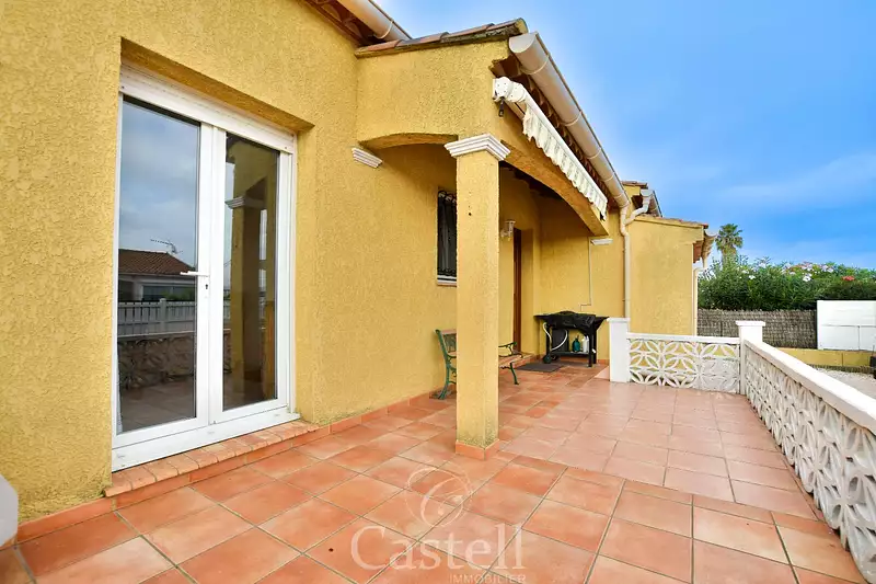 Votre agence castell immobilier vous présente, à vendre : RARE sur Marseillan, villa plain pied 4 faces d'environ 94m² avec garage, sur terrain piscinable d'environ 400m². Vous profiterez d'un lumineux séjour d'environ 33 m² climatisé, d'une cuisine séparée d'environ 9m² (possibilité d'ouvrir pour avoir un bel espace de vie de 42m²), de trois chambres dont une climatisée, d'une salle d'eau avec fenêtre et d'un WC séparé. Le tout est complété par un garage d'environ 20m² avec mezzanine et coin buanderie. L'extérieur est agréablement arboré et dispose d'un chalet de jardin, pratique pour du rangement supplémentaire. Il est piscinable et vous fera profiter d'une belle terrasse en dur de 14m² avec store-banne manuel. Vous pourrez également garer un véhicule sur la place de parking attenante au garage. Les +++ : climatisation réversible dans le séjour et dans une chambre, cuisine aménagée et équipée, double vitrage, isolation des combles, terrain piscinable, garage... Dans un environnement calme et résidentiel, non mitoyenne, cette villa est une pépite ! A découvrir rapidement ! Ce bien vous est proposé par Charlotte DIEBOLD, agent commercial (RSAC 919 461 244)