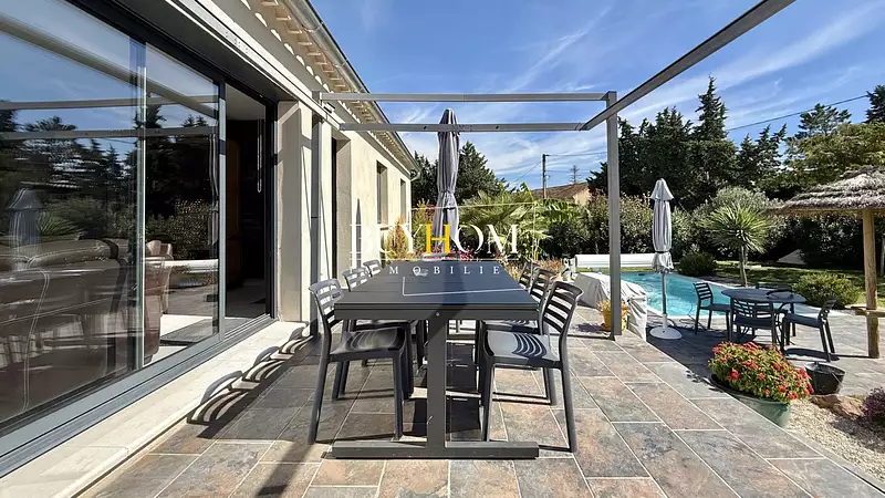 À l'extérieur, le charme opère avec un jardin de 539 m² soigneusement arboré, une belle piscine et une agréable terrasse ombragée par une pergola, le tout dans un calme absolu, idéal pour profiter pleinement des beaux jours. Alliant modernité, confort et sérénité, cette maison est un véritable cocon au coeur de Pernes-les-Fontaines.