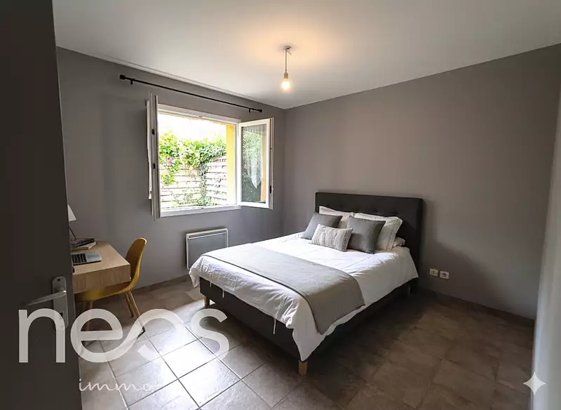 À vendre à Saint-Germain-du-Puch, maison de plain-pied de 93 m² située dans une petite impasse offrant un environnement calme et sans circulation. Elle se compose d’un salon-séjour lumineux ouvert sur une cuisine fonctionnelle, de trois chambres, d’une salle de bain avec coin buanderie, d’un WC indépendant, d’un cellier et d’un garage attenant. Cette maison offre un cadre de vie agréable, entouré de vignes, avec un accès rapide aux commodités à pied et aux principaux axes routiers.