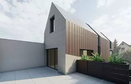 La parcelle, d'une surface totale de 140 m², conserve l'implantation originelle du bâti existant, avec une emprise de 93 m². Le projet prévoit une maison sur trois niveaux, avec au rez-de-chaussée un garage privatif avec accès direct sur la rue des Aulnes, ainsi que des espaces de vie. À l'étage, un espace de vie principal s'ouvrira sur une grande terrasse exposée Ouest-Est, idéale pour profiter de l'extérieur. Le dernier niveau complétera l'aménagement de ce futur logement familial ou urbain.