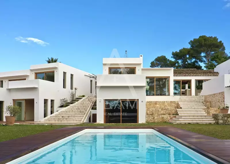 Cette propriété atypique et époustouflante entourée de verdure se compose de 9 chambres, 9 salles de bains, 5 cuisines, d'une grande piscine, d'une luminosité étincelante, de matériaux de très grande qualité soigneusement choisis, ainsi que de beaux et généreux volumes aux potentiels infini et aux détails minutieux.