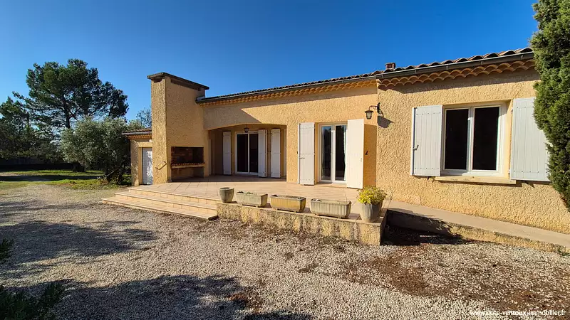 Amateurs de calme et de lumière, cette maison de plain-pied de 94 m² idéalement située en hauteur du village d'Aubignan ne manquera pas de vous séduire ! Parfaitement entretenue, elle offre un cadre de vie paisible et un intérieur où il fait bon vivre, baigné de soleil du matin au soir grâce à sa belle exposition est-ouest. Dès l'entrée, vous découvrirez une pièce de vie spacieuse et lumineuse avec cheminée et climatisation ouvrant sur une agréable terrasse avec barbecue, idéale pour profiter des longues soirées d'été. La cuisine indépendante, fonctionnelle et bien agencée, dispose également d'un accès à la terrasse. La partie nuit se compose de trois chambres confortables avec placards, d'une salle d'eau et de deux toilettes indépendants dont un avec lave mains. Pour votre confort, la villa est équipée, de double vitrage, de volets électriques et en bois, d'un portail automatique, d'une porte de garage automatique, de gouttières en zinc et d'un tableau électrique neuf... Un garage de 25 m² avec mezzanine vient compléter ce bien, si vous souhaitez stationner votre véhicule à l'intérieur, si vous aimez bricoler, si avez besoin de stocker et d'avoir un atelier vous avez l'espace nécessaire. Le tout est implanté sur une parcelle entièrement close et arborée de 1289 m², située en zone constructible, un atout rare qui vous permettra d'envisager aisément la création d'une piscine selon vos envies. Pour un achat en toute sérénité contactez-nous. Côté Ventoux Immobilier a le plaisir de vous accueillir dans ses agences disposant d'un parking à AUBIGNAN et MAZAN. Vous pouvez estimer gratuitement votre bien en ligne sur notre site : Les informations sur les risques auxquels ce bien est exposé sont disponibles sur le site Géorisques : www.georisques.gouv.fr