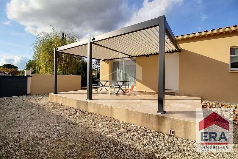Nouveauté à Carpentras - Située dans l'un des quartiers les plus prisés de Carpentras, découvrez cette charmante maison moderne offrant de belles prestations. Construite sur une parcelle de plus de 400m² et avec une surface habitable d'environ 94m², cette propriété de plain-pied comprend 4 pièces, dont 3 chambres spacieuses et deux munies d'un placard, un séjour très lumineux de plus de 40m² donnant sur une terrasse couverte avec pergola bioclimatique, une salle de bains en travertin avec baignoire et douche, un WC suspendu indépendant et un garage communiquant avec la partie habitable. Le séjour s'ouvre sur un jardin exposé plein sud, offrant une vue agréable et un cadre de vie calme. Cette maison, construite en 2022, est en très bon état et bénéficie d'un standing de qualité. Elle est dotée d'un système de chauffage performant par pompe à chaleur air/air gainable et d'un ballon thermodynamique. Pour votre confort, chacune des pièces est dotée d'un thermostat vous permettant d'adapter leur température en fonction de vos besoins - Menuiseries en alu et PVC double vitrage - Volets roulants électriques - Moustiquaires - Chauffage individuel - Pompe à chaleur air/air gainable - Stationnements - Garage. A découvrir sans tarder ! Votre équipe ERA Immobilier Carpentras est à votre disposition pour plus d'information au 04.90.60.99.77. Les informations sur les risques auxquels ce bien est exposé sont disponibles sur le site Géorisques http:www.georisques.gouv.fr