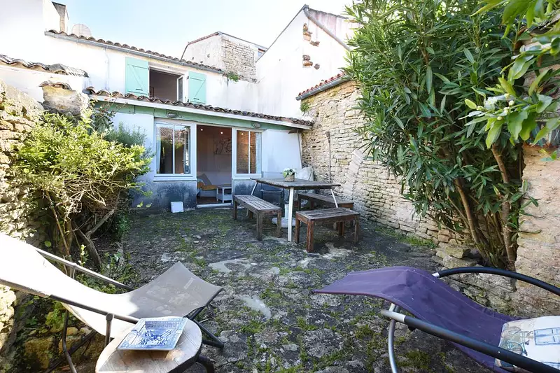 Jolie maison Rétaise située au coeur du village comprenant une pièce de vie salon, salle à manger cuisine ouverte aménagée et équipée, salon avec un poele à bois et un double accès sur ruelle.
