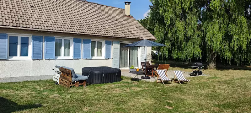 Notre avis : une maison située au calme absolu sur 1374 m2 de terrain arboré permettant une vie agréable de plain-pied.