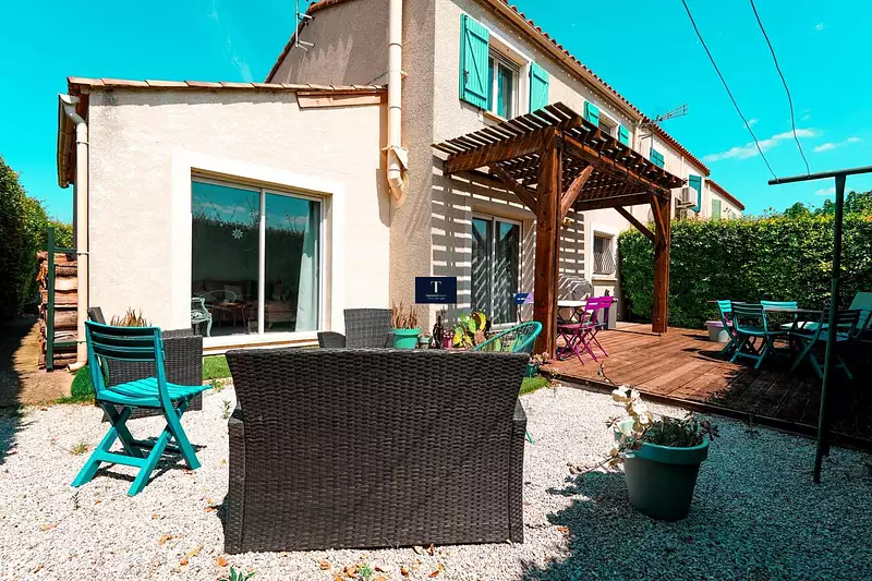 Côté extérieur, laissez-vous séduire par un spacieux jardin gravillonné à l'avant de la maison, ainsi qu'un autre espace intimiste, sans aucun vis-à-vis à l'arrière comprenant une terrasse en bois surmontée d'une pergola et un espace détente gravillonné, parfait pour vos soirées d'été.