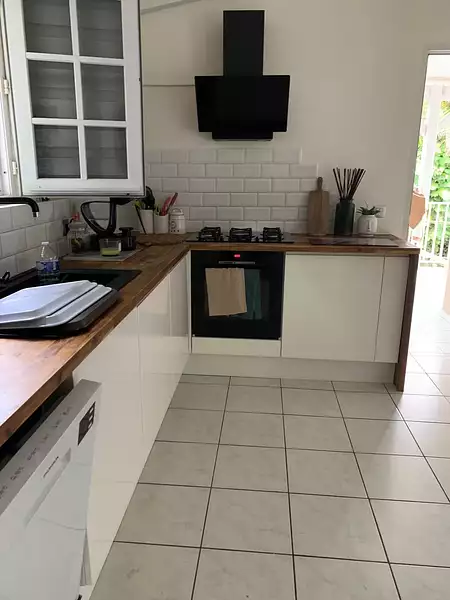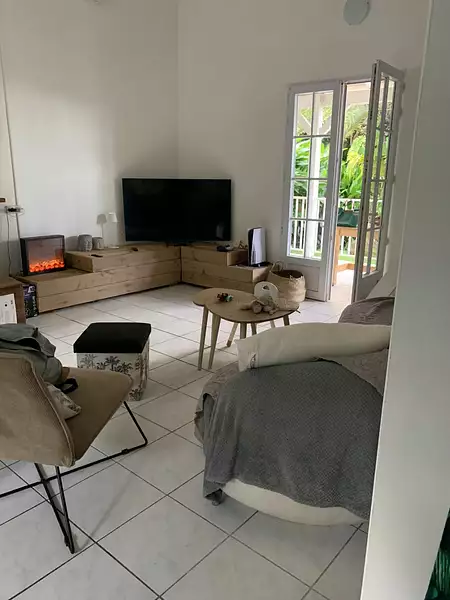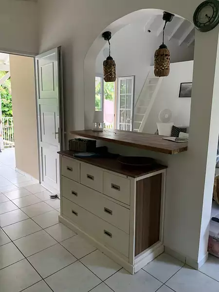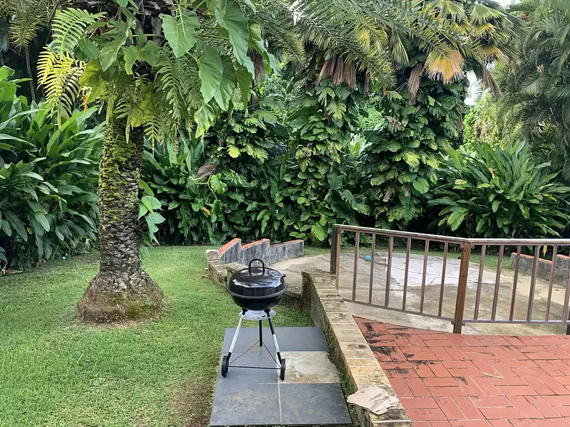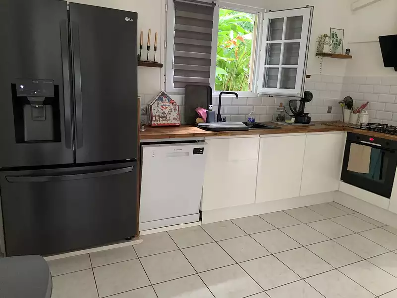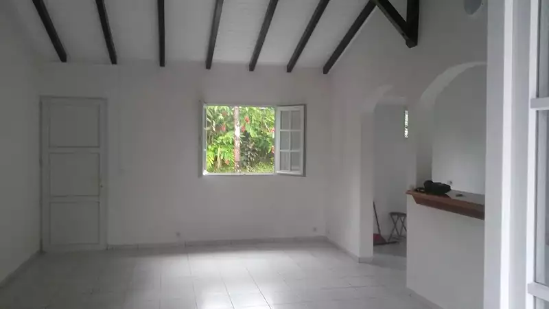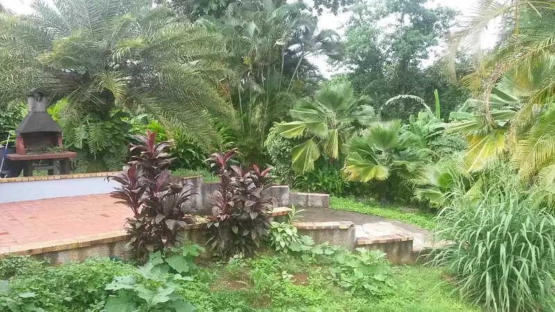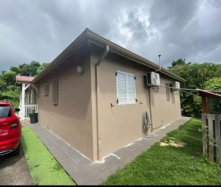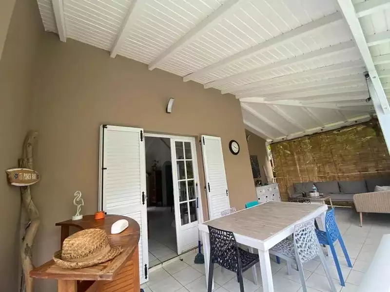 Propriété comprenant une villa T4 en bon état général de 94,91m² habitable constituée d'une cuisine aménagée et semi-équipée, d'un cellier, d'un séjour avec mezzanine, de 3 chambres climatisées, d'une salle de bain, d'une salle d'eau, d'un wc, d'une terrasse couverte et d'une terrasse découverte, d'un jardin clôturé d'une superficie de 1498m², d'un très grand terrain boisé situé en zone naturelle non constructible d'une superficie de 10879m², le tout dans une impasse et dans un quartier résidentiel calme à Hauteurs Lézarde à Petit-Bourg.