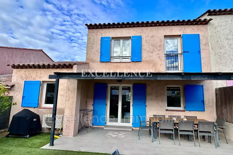 Jolie maison mitoyenne située dans une résidence avec piscine à proximité du golf et des plages de Sainte Maxime. Elle offre de plain pied un lumineux séjour, une cuisine entièrement aménagée, une chambre avec sa salle de douche. A l'étage trois chambres avec une salle de douche. A l'extérieur un garage et jardinet.