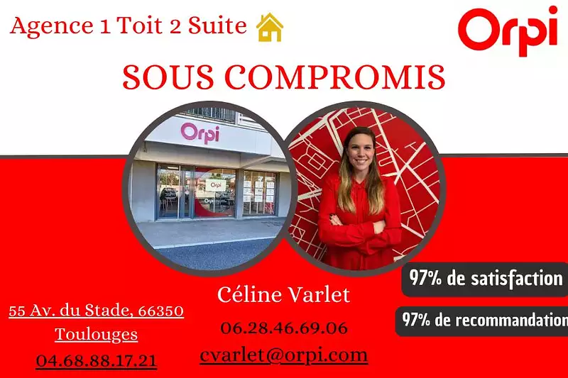 Orpi vous propose en exclusivité sur la commune de Toulouges, cette maison de plain pied située dans une rue très calme, à 2 min à pied du parc de Clairfont.