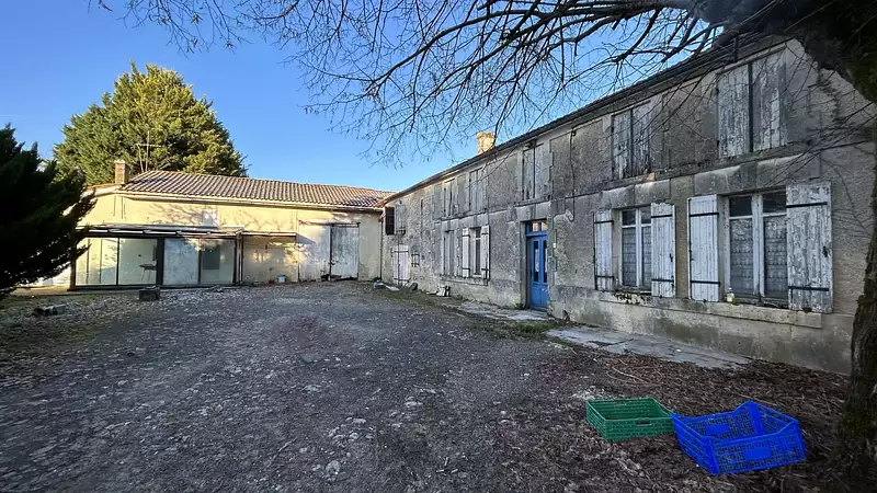 Ce corps de ferme idéalement situé à quelques encablures de la ville de Barbezieux dispose d'une forme en "L".